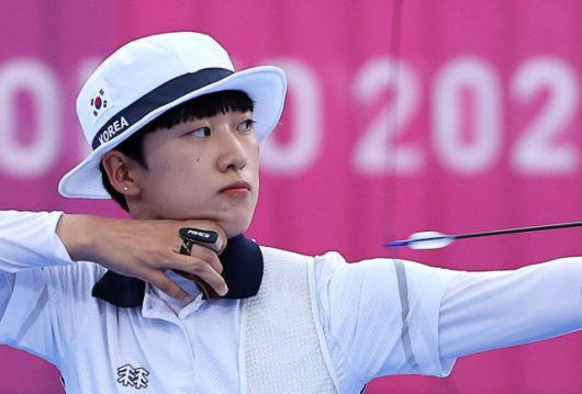 세트 스코어 5-5. 금메달과 은메달의 주인공은 이제 슛오프에서 단 한 발로 결판나게 됐다. 긴박한 순간에도 스무 살 신궁 안산은 미소를 잃지 않았다. 류수정 여자 대표팀 감독이 긴장을 풀어주려는 듯 익살스러운 제스처를 보이자 ‘아니다’는 의미로 손가락을 젓기도 했다. 사대에 오른 안산의 손을 떠난 화살이 70m를 날아가 노란색 중앙에 꽂혔다. 10점 만점. 과녁을 응시하던 안산의 표정에는 변화가 없었다. 8점을 쏜 러시아올림픽위원회(ROC)의 옐라나 오시포바는 허탈하게 웃었다. 비로소 안산은 류 감독의 품에 안기며 승리의 환호에 젖어들었다. 2020 도쿄올림픽에서 처음으로 3관왕이 탄생하는 순간이었다.