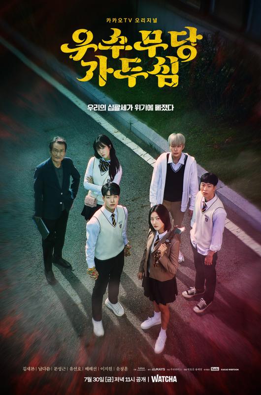 김새론, 남다름 주연의 판타지 미스터리 드라마 '우수무당 가두심'는 원치 않는 운명을 타고난 소녀 무당 '가두심(김새론)'과 귀신을 보게 된 엄친아 '나우수(남다름)'가 위기의 18세를 무사히 넘기기 위해 함께 미스터리를 파헤쳐 가는 '고교 퇴마로그'다. 가두심은 평범한 삶을 살고 싶어하지만 18세를 무사히 넘겨야만 한다. 전학간 학교에서 의문의 전교 꼴등 자살 사건에 휘말리게 된 가두심은 전교 1등 엄친아 '나우수'가 영혼을 보게 되면서 함께 악령에 맞선다. 왓챠에서 매주 금요일 23시에 새로운 에피소드를 만날 수 있다.