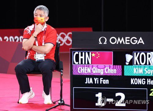 (도쿄=연합뉴스) 특별취재단 = 배드민턴 여자복식 김소영(29·인천국제공항)-공희용(25·전북은행)을 꺾고 환호한 중국의 천칭천-자이판. 그들의 뒤에는 한국인 코치가 있었다.