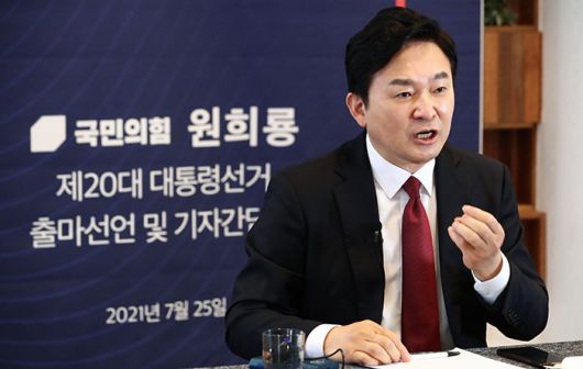 원희룡 제주지사가 지난달 25일 대선 출마 선언 기자회견을 하고 있다. /국회사진기자단 |