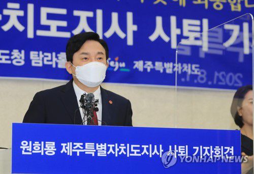 원 지사는 이날 오후 2시 제주도청 4층 탐라홀에서 사임 기자회견을 통해 "도민과 국민의 삶을 지키기 위한 정권교체에 나서 도지사직을 사임하게 됐다"고 밝혔다.