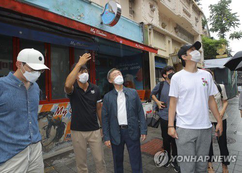 상인들과 함께 세계음식문화거리 둘러보는 최재형 |
