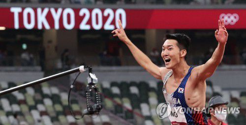 (도쿄=연합뉴스) 특별취재단 = 우상혁(25·국군체육부대)이 높이 날아올라, 남자 높이뛰기 한국 신기록을 세우고, 한국 육상 트랙&필드 올림픽 최고 순위 기록을 바꿔놨다.