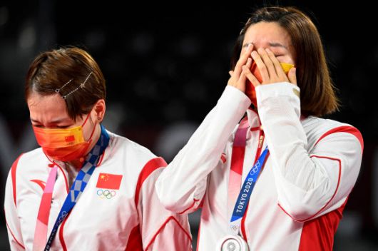 경기 중 기합을 하는 척하며 사실은 욕설을 내뱉었다는 논란을 불러일으킨 중국 탁구 선수 천칭천이 2020 도쿄올림픽 여자복식 결승전에서 완패해 은메달에 머물렀다.
