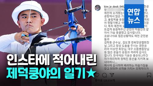 (서울=연합뉴스) 2020 도쿄올림픽에서 양궁 2관왕에 오른 '파이팅 소년 궁사' 김제덕(17·경북일고)이 귀국 후 소감을 SNS에 올리며 근황을 전했습니다.