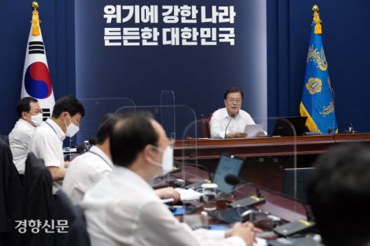 문재인 대통령이 2일 청와대에서 수석·보좌관회의를 주재했다. 청와대 제공 |