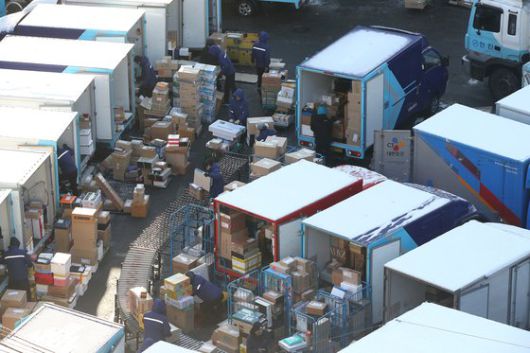 4일 오전 서울 마포구의 한 택배물류센터에서 관계자들이 택배 분류 및 상하차 작업을 하고 있다. 뉴스1 |
