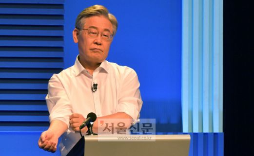 이재명 더불어민주당 대선 경선 후보가 4일 서울 마포구 YTN미디어센터에서 열린 YTN 주최 TV토론에 참석, 토론회 준비를 하고 있다.2021. 8. 4 김명국 선임기자 daunso@seoul.co.kr |