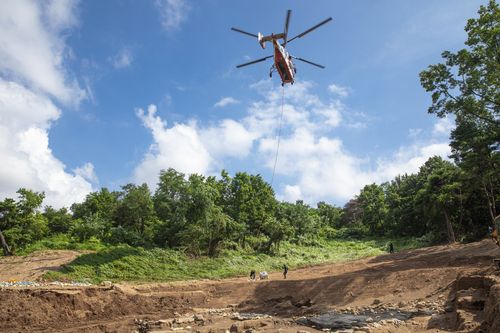 문화재청 관계자는 "산림청 헬기로 대형 유물을 나르기는 처음"이라며 "나무는 공기에 노출되면 빠르게 부패하기 때문에 시급히 운반할 필요가 있었다"고 말했다.