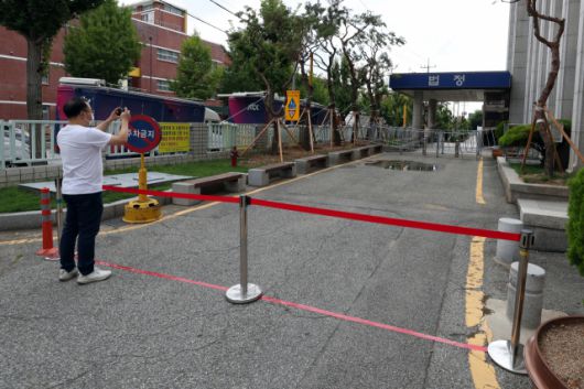 전두환 전 대통령의 사자명예훼손 혐의 항소심 공판을 하루 앞둔 8일 광주 동구 지산동 광주지방법원 앞에 전씨의 출석에 대비한 안전울타리가 설치돼 있다. 전씨는 자신의 회고록에서 5·18 광주 민주화운동 당시 헬기 사격 목격 증언을 한 고(故) 조비오 신부의 명예를 훼손한 혐의로 기소됐으며 1심 재판부는 전씨에게 징역 8개월에 집행유예 2년을 선고했다. /광주=연합뉴스