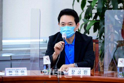 장성민 국민의힘 대선 경선 예비후보가 5일 서울 여의도 국회에서 열린 국민의힘 제20대 대통령선거 경선 예비후보 전체회의에서 발언하고 있다.(사진=방인권 기자) |