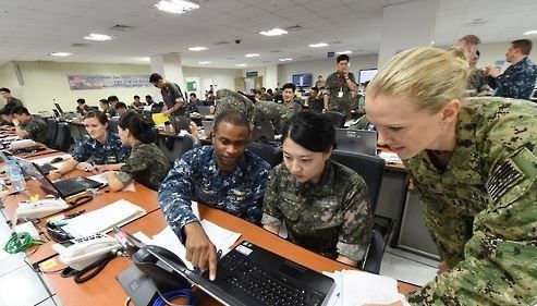 한미가 지난 3월 야외 기동훈련을 하지 않는 대신 컴퓨터 시뮬레이션을 활용한 전반기 연합지휘소훈련에 돌입한 모습. 자료사진. [연합] |