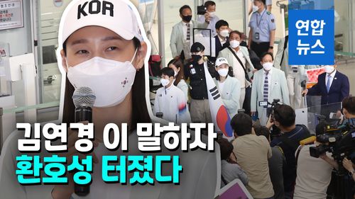 팬들은 앞다퉈 휴대전화와 카메라를 꺼내 들었고, 공항 한쪽에서 대한체육회의 환영 행사가 열리는 동안에도 줄곧 박수와 환호를 보냈습니다.