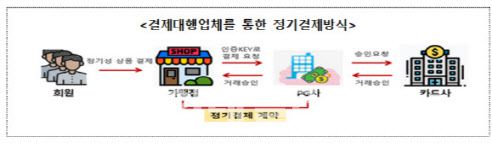 이에 따라 여전법 시행령 개정안은 구독경제 소비자 보호를 위해 결제대행업체가 유료전환, 거래 취소, 환불 등 방법과 절차에 관한 위임 근거를 마련하고 세부 내용은 감독규정에서 정하도록 했다. 감독규정은 유료전환 7일 전까지 고지하는 방법을 마련하고 사용일수와 회차, 사용 여부 등을 고려한 환불 기준도 만들도록 했다. 현재는 한 번이라도 서비스를 이용하면 환불이 안 되거나 포인트로 환불되는 등의 문제가 있다.
