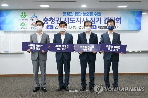 (세종=연합뉴스) 박주영 기자 = 충청권 4개 시·도지사가 9월 정기국회 이전 국회 세종의사당 설치 등 내용을 담은 국회법 개정안을 처리할 것을 촉구했다.
