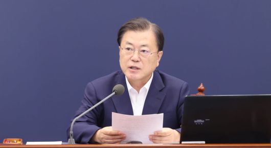 문재인 대통령이 9일 청와대에서 열린 수석·보좌관회의에서 발언하고 있다. 연합뉴스 |