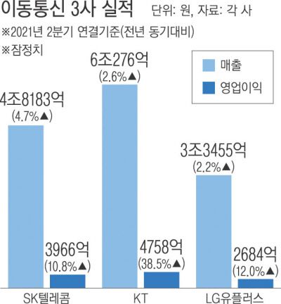 이통 3사, 5G 가입자 증가로 2분기 연속 합산 영업이익 1조 넘겨