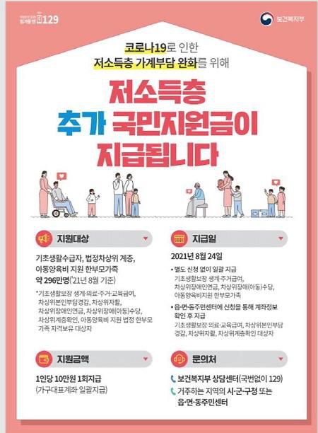 이민우 시 복지국장은 “코로나19 장기화로 모두가 힘든 시기이지만 저소득층이 체감하는 어려움은 더욱 클 것이기에 이번‘저소득층 추가 국민지원금’이 복지취약계층의 가계에 조금이나마 도움이 되기를 바라며, 이후에도 저소득층 생활안정을 위해 최선을 다하겠다”고 말했다.