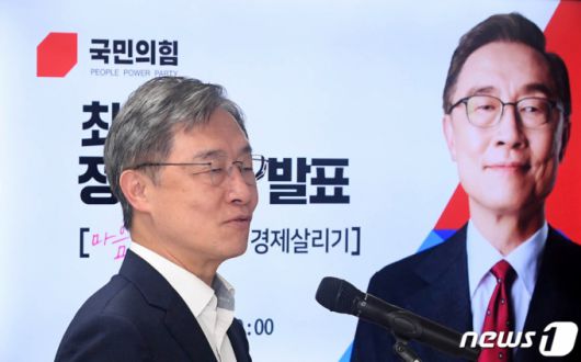 (서울=뉴스1) 오대일 기자 = 최재형 국민의힘 대선 예비후보가 13일 서울 여의도 대하빌딩에 위치한 캠프 기자실에서 경제분야 정책비전 발표를 하고 있다. 최 후보는 이 자리에서 |