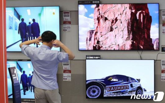 (서울=뉴스1) 임세영 기자 = 22일 오후 서울의 한 대형 가전마트에서 직원이 TV를 살펴보고 있다. 코로나19 확산 여파로 집에 있는 시간을 늘면서 넷플릭스, 유튜브 등 이용량이 증가하며 덩달아 TV, 모니터 등 제품 판매도 증가 한 것으로 알려졌다. 지난 1일 대형 가전마트 따르면 지난달 15일부터 30일까지 모니터 매출은 35.8% 증가했다. 태블릿 PC 판매도 47.8% 늘었다. TV(35.8%)와 사운드바 등 TV주변기기(67.4%)를 찾는 사람도 크게 늘었다. 2020.9.22/뉴스1 |