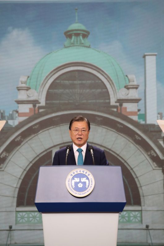 문재인 대통령이 15일 서울 중구 ‘문화역서울 284’(구 서울역사)에서 열린 제76주년 광복절 경축식 경축사를 통해 “이제 선진국이 된 우리는 다시 꿈꾼다. 평화롭고 품격 있는 선진국이 되고 싶은 꿈이다. 국제사회에서 제 몫을 다하는 나라가 되고자 하는 꿈”이라고 말했다.