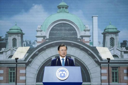 문 대통령은 "오늘 기념식이 열린 '문화역 서울284'는 일제강점기, 아픔과 눈물의 장소였다. 우리 땅에서 생산된 물자들이 수탈돼 이곳에서 실려 나갔다"며 "고난의 길을 떠나는 독립지사들과 땅을 잃은 농민들이 이곳에서 조국과 이별했고, 꽃다운 젊음을 뒤로 하고 전쟁터로 끌려가는 학도병들과 가족들이 이곳에서 눈물을 흘렸다"고 말했다.