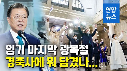 (서울=연합뉴스) 문재인 대통령이 15일 임기 마지막 광복절 경축사에서 '선도국가 도약', '한반도 모델 구축'을 핵심으로 하는 국가 비전을 제시했습니다.