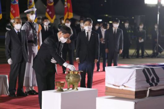 또 카자흐스탄 현지에서 유해를 모셔온 황기철 국가보훈처장, 우원식 더불어민주당 의원, 배우 조진웅 씨도 자리를 지켰다.