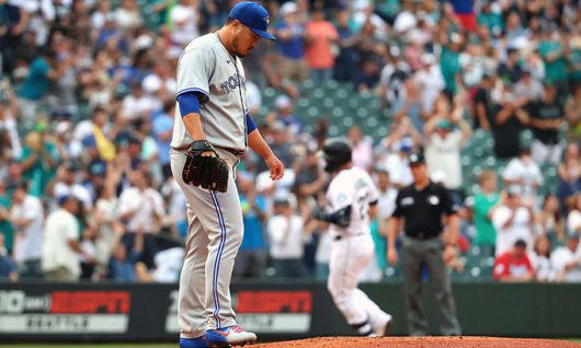 토론토 투수 류현진이 15일 미국 워싱턴주 시애틀의 T 모바일파크에서 열린 시애틀과의 경기에 1회 투런홈런을 내준 뒤 고개를 숙이고 있다. 시애틀=USATODAY연합뉴스 |
