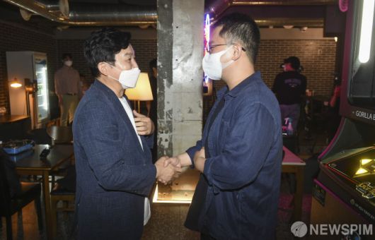 [서울=뉴스핌] 정일구 기자 = 국민의힘 대권주자인 원희룡 전 제주도지사가 16일 오후 서울 노원구 상계동 한 식당에서 청년 자영업자를 만나 인사를 나누고 있다. 2021.08.16 mironj19@newspim.com 저작권자(c) 글로벌리더의 지름길 종합뉴스통신사 뉴스핌(Newspim), 무단 전재-재배포 금지