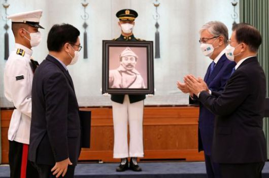 또 "일제강점기 연해주의 우리 동포들이 중앙아시아에 강제이주될 때 카자흐스탄이 우리 동포들을 따뜻이 품어 주었고, 우리 동포들도 카자흐스탄의 발전과 화합에 적지 않은 기여를 했다"며 "양국 사이에는 홍 장군과 고려인 동포들이 있고, 포용과 상생의 힘으로 고난의 역사를 극복해온 공통의 경험이 있다"고 양국간 우애를 강조했다.