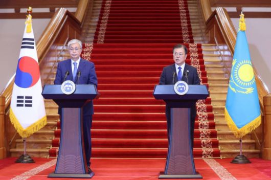 문재인 대통령이 17일 카심 조마르트 토카예프 카자흐스탄 대통령과 청와대에서 정상회담을 갖고 전략적 동반자 관계를 확대해 나가자고 했다.