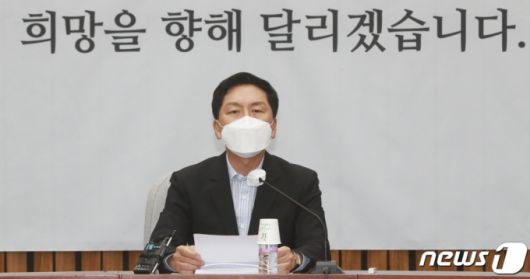 (서울=뉴스1) 오대일 기자 = 김기현 국민의힘 원내대표가 13일 오전 서울 여의도 국회에서 열린 원내대책회의에서 모두발언을 하고 있다. 2021.8.13/뉴스1 |