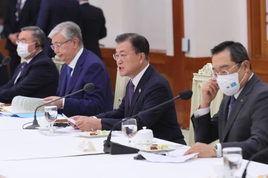또 2019년 카자흐스탄 방문 계기 합의한 중기 협력 프로그램인 '프레시 윈드'의 성과를 지속 창출하는 한편, 정상회담을 통해 합의된 빅데이터, 5G, 바이오헬스, 우주개발 등 신산업 분야에서의 협력도 한층 강화해 나갈 것을 당부했다.