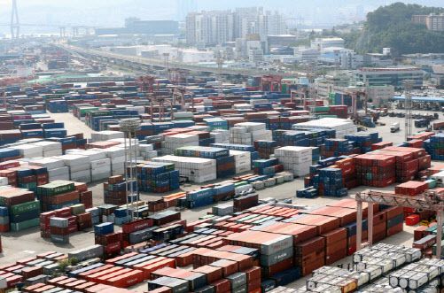 부산항에 대기하고 있는 컨테이너의 모습 (사진 = 연합뉴스) |