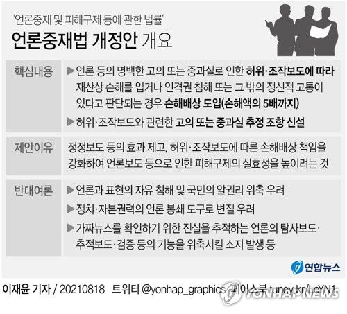 언론사의 고의·중과실에 따른 허위·조작 보도에 대해 최대 5배까지 손해배상 청구가 가능하도록 하는 게 핵심이다.