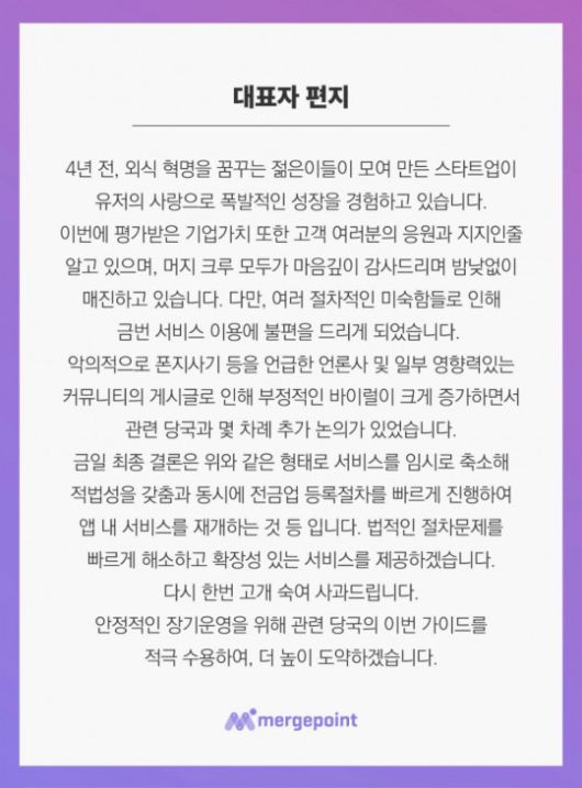 머지포인트 사태에 대한 머지플러스 공지. /사진=머지포인트 홈페이지 |