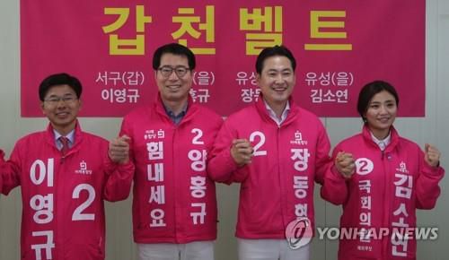 기자회견하는 통합당 대전 후보들 |