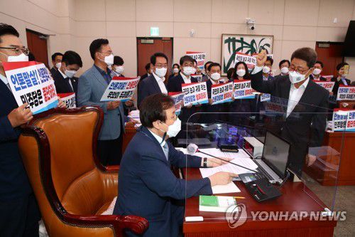 국민의힘, 문체위 언론중재법 의결 시도 항의 |