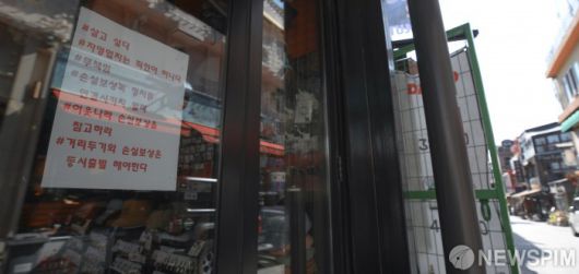 [서울=뉴스핌] 최상수 기자 = 코로나19 4차 대유행과 4단계 유지로 인해 자영업자들의 어려움이 계속되는 가운데 19일 서울 용산구 이태원의 한 점포에 거리두기 및 손실보상 관련 호소문이 붙어있다. 서울시 우리마을가게 상권 분석 서비스에 따르면 주요 상권의 외식업 매출액 분석 결과 올해 1분기 매출액은 2019년 1분기보다 51% 감소했다. 특히 이태원의 경우 1분기 매출액이 2019년보다 82% 폭락했다. 2021.08.19 kilroy023@newspim.com