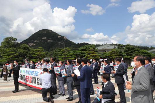 청와대 앞으로 간 국민의힘 의원들 (서울=연합뉴스) 국민의힘 김기현 원내대표와 의원들이 17일 서울 종로구 청와대 앞 분수대 광장에서 긴급 의원총회를 열고 있다. 2021.8.17 [국회사진기자단] jeong@yna.co.kr/2021-08-17 15:51:59/ <저작권자 ⓒ 1980-2021 ㈜연합뉴스. 무단 전재 재배포 금지.> |
