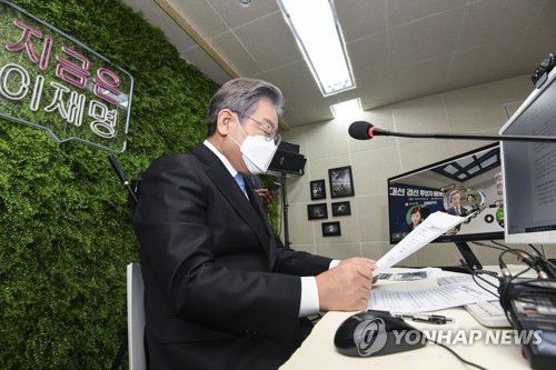 (서울=연합뉴스) 이유미 강민경 기자 = 더불어민주당 유력 대권주자인 이재명 경기지사가 지난 6월 쿠팡 물류센터 화재 당시 황교익 씨와 '떡볶이 먹방'을 촬영한 것과 관련, 여야 주자들이 파상공세를 폈다.