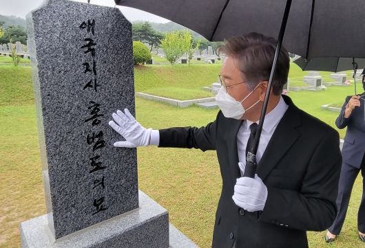 이 후보는 이날 오전 국립대전현충원에서 유해가 봉환된 홍범도 장군의 묘역을 참배하는 등 충청 지역 일정에 집중했다. 오후에는 국회세종의사당 건립이 예정된 부지를 시찰한 뒤 천안아산상생협력센터를 방문해 지역 민심 다지기에 나선다는 계획이다.