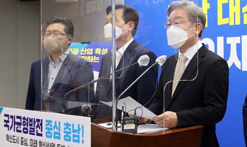 충남 균형발전 공약 발표하는 이재명 |