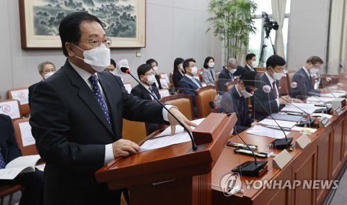 (서울=연합뉴스) 고상민 강민경 기자 = 유영민 대통령 비서실장은 23일 여당이 밀어붙이고 있는 언론중재법 개정안 입법과 관련해 "법안 제출이나 그 이후 진행 과정에 대해 청와대는 전혀 관여한 바가 없다"고 밝혔다.