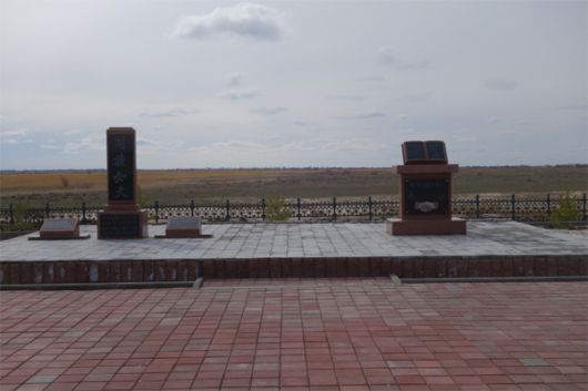 카자흐스탄 우슈토베(바슈토베 언덕) `한·카자흐스탄 우호친선공원`에 고려인 추모비(왼쪽)와 한·카자흐스탄 우호기념비가 나란히 세워져 있다. [사진 제공 = 통일문화연구원] |