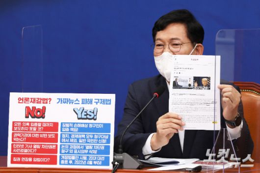 이어 "(해당 법은) 가해자가 국민이 될 수 없다"며 "배상책임, 반론정정보도권 보장, 허위 과장 보도에 대해 열람을 즉시 차단하는 등 언론피해자를 보호하는 법"이라고 했다. 그러면서 "국민을 보호하는 법인데 왜 이렇게 딴지걸고 발목잡는지 모르겠다"고 말했다.