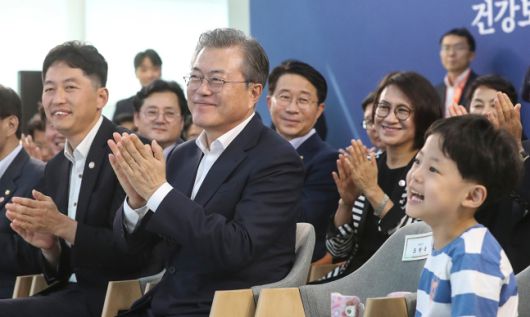 문재인 대통령이 지난 2019년 7월 2일 경기 고양시 국민건강보험공단 일산병원에서 열린 건강보험 보장성 강화대책 2주년 대국민 성과보고대회에서 박수치고 있다. 청와대 제공 |