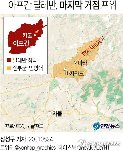(테헤란·서울=연합뉴스) 이승민 특파원 김진방 기자 = 아프가니스탄을 장악한 이슬람 무장조직 탈레반이 카불 북부 반대파 민병대 거점을 대부분 탈환했다고 주장했다.