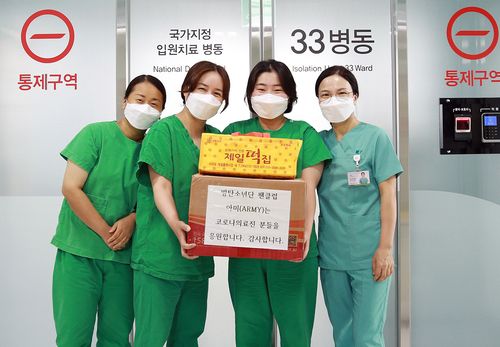 이들은 서신에서 "힘든 코로나 시기에 다들 마음이 지칠 때 33병동 의료진의 따뜻함에 진심으로 행복했다"며 "노고에 감사드리며 방탄소년단 팬클럽 아미는 언제나 코로나 의료진을 응원할 것"이라고 했다.